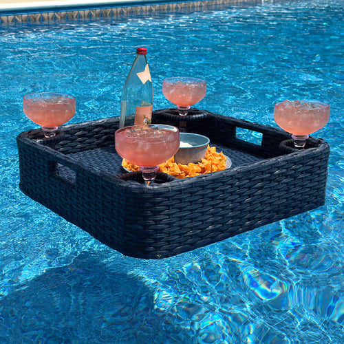 Elevate your poolside experience with the SUNJOY 24” x 24” floating pool tray and impress your party guests with its unique design. Crafted with an aluminum to prevent rusting, this tray guarantees uncompromising quality and long-lasting enjoyment. Its exquisite handmade craftsmanship offers an environmentally friendly and beautiful design that won't fade in the sun. No more flimsy inflatable trays—our premium floating tray for the pool features impeccable design and durability, carefully lined with custom foam for smooth weight handling and perfect balance. Plus, it's waterproof for long-lasting performance. Measuring 24 x 24 inches, this tray provides ample space for drinks and appetizers during pool or lake parties. It's not just a tray; it's a must-have accessory to transform your backyard pool into a luxurious resort. Give yourself or someone you love the gift of unforgettable poolside experiences with this exceptional accessory.