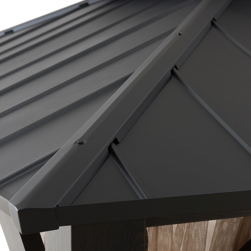 SUNJOY 15x13 Hardtop Steel Gazebo with Netting, Ceiling Hook & Realistic Woodgrain Finish