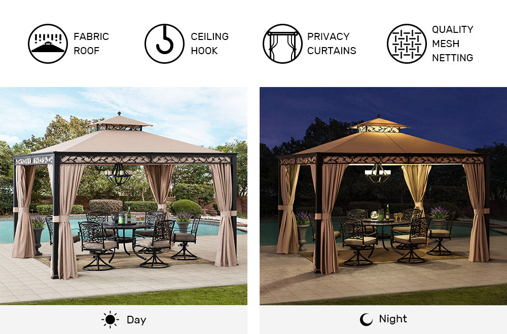 Make it your own. With innovative design and thoughtful function, SUNJOY gazebos are as beautiful as they are functional—ready for lights, curtains, or whatever your outdoor lifestyle needs.