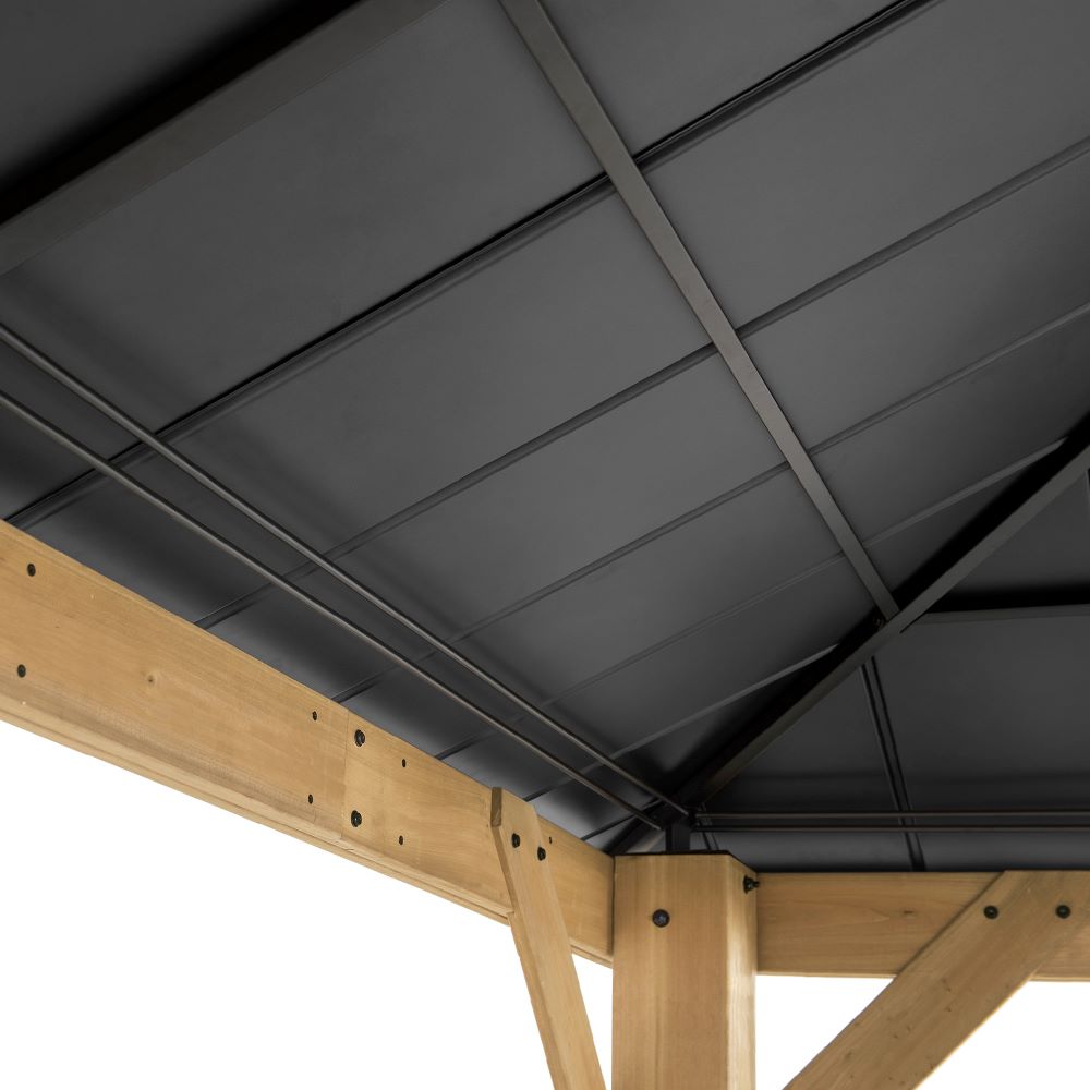 Rest easy under this durable steel hip roof that will withstand the elements for seasons to come. Sun, rain, or snow, you and your patio furnishings will be protected beneath this hardtop gazebo.