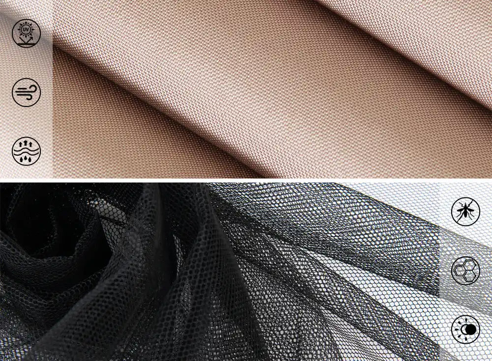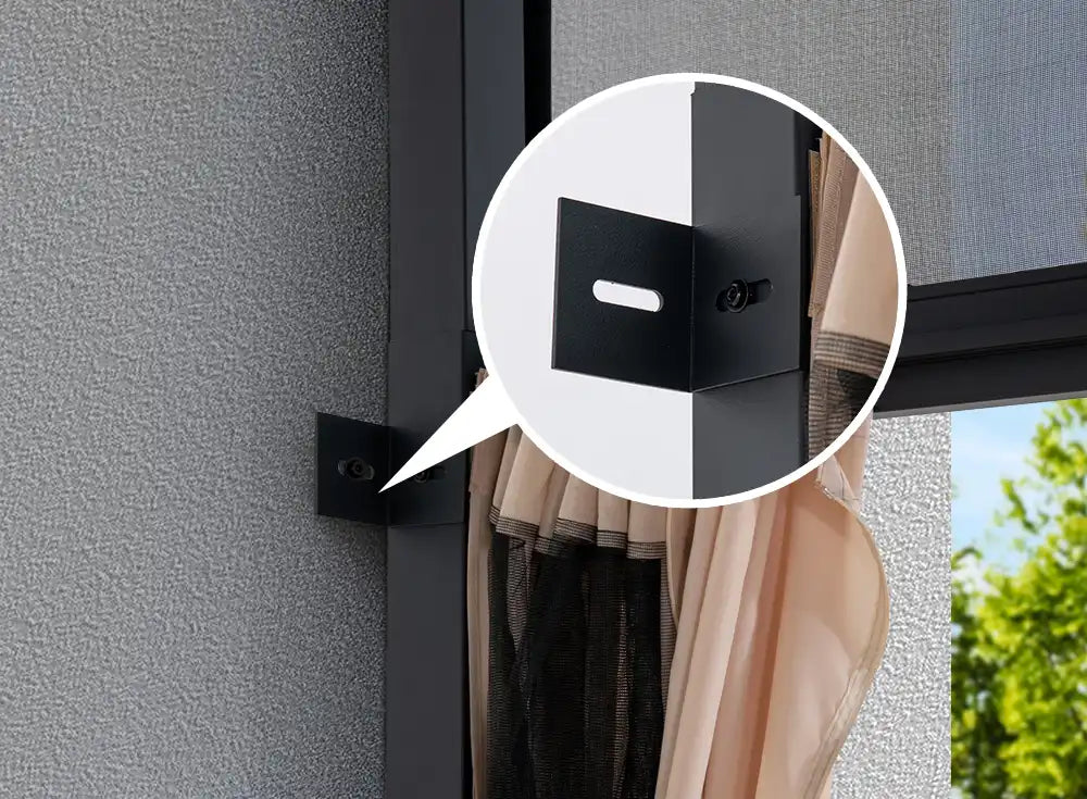 Included four khaki weather-resistant curtains and mosquito netting, this hardtop gazebo is equipped with a built-in dual rail system, providing privacy and protection from insects.