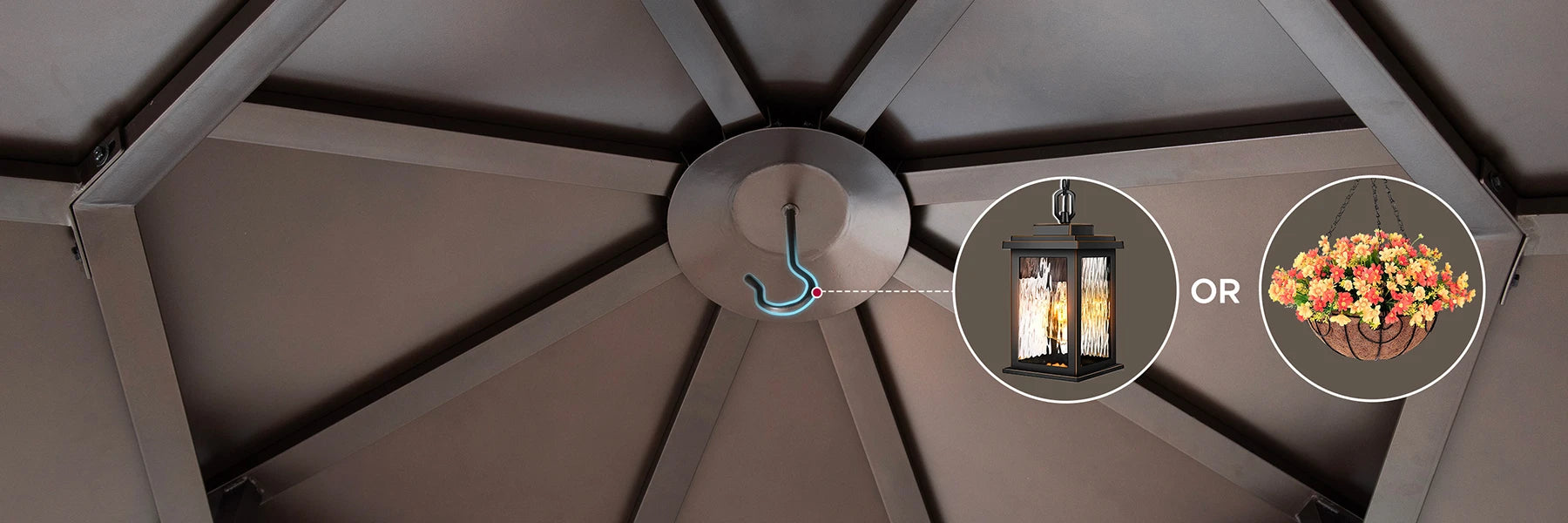 Thoughtfully equipped with built-in curtain rods for hanging netting and curtains, plus ceiling hooks for lights, each SUNJOY gazebo provides a versatile space that’s as comfortable as it is stylish.
