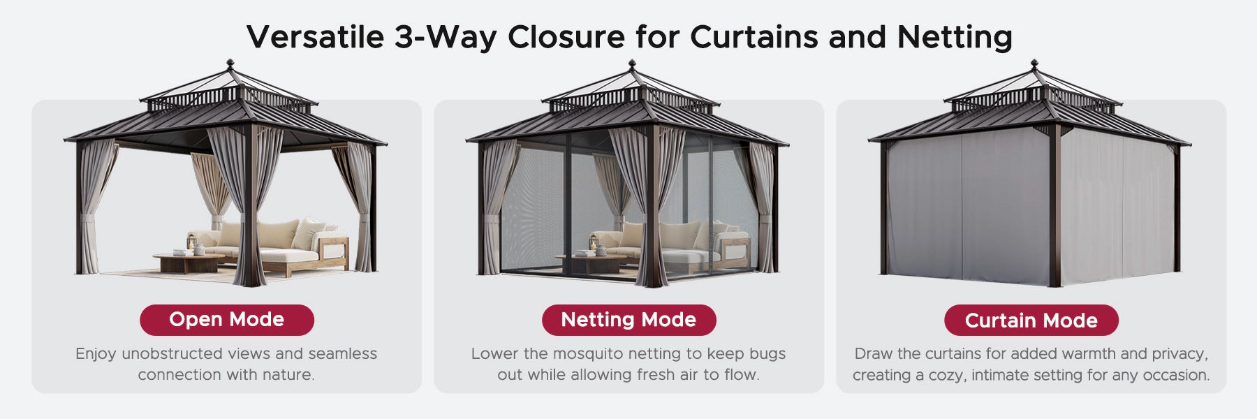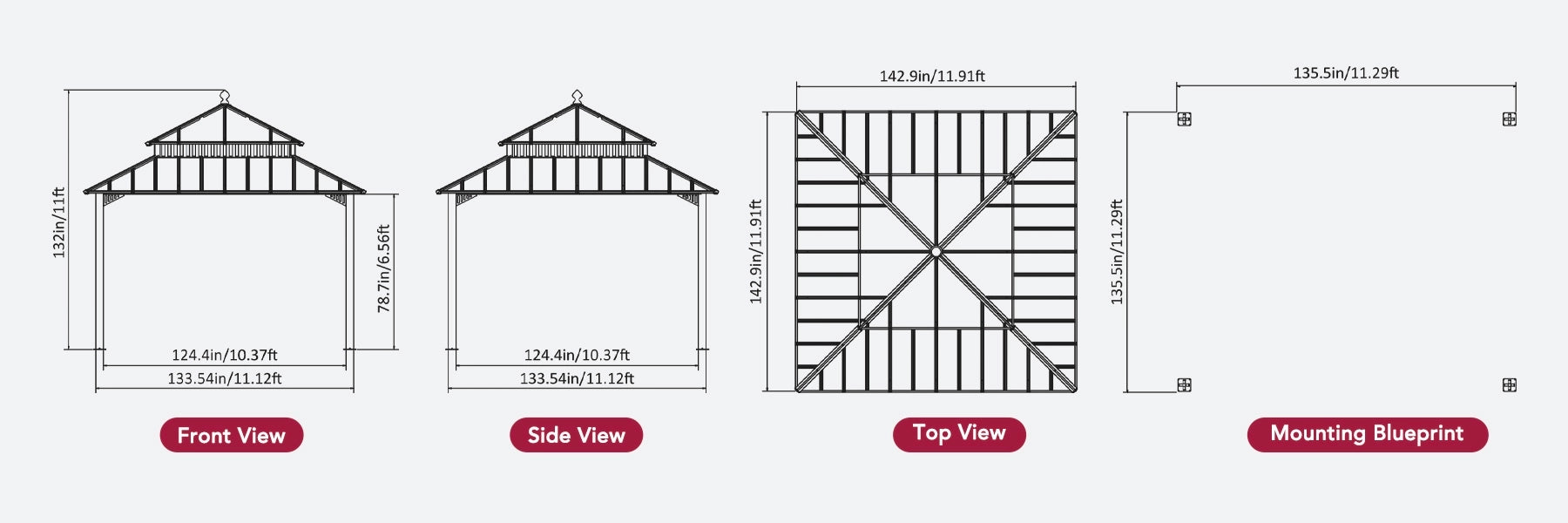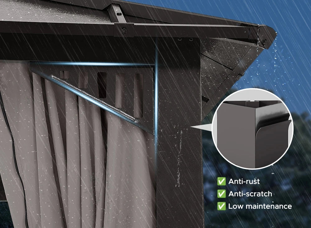 Introducing the Kingston gazebo series — engineered for serious weather, refined for backyard comfort. Crafted with a heavy-duty galvanized steel roof, rust-proof aluminum frame, and DIY friendly design, it provides year-round shelter with standout style.