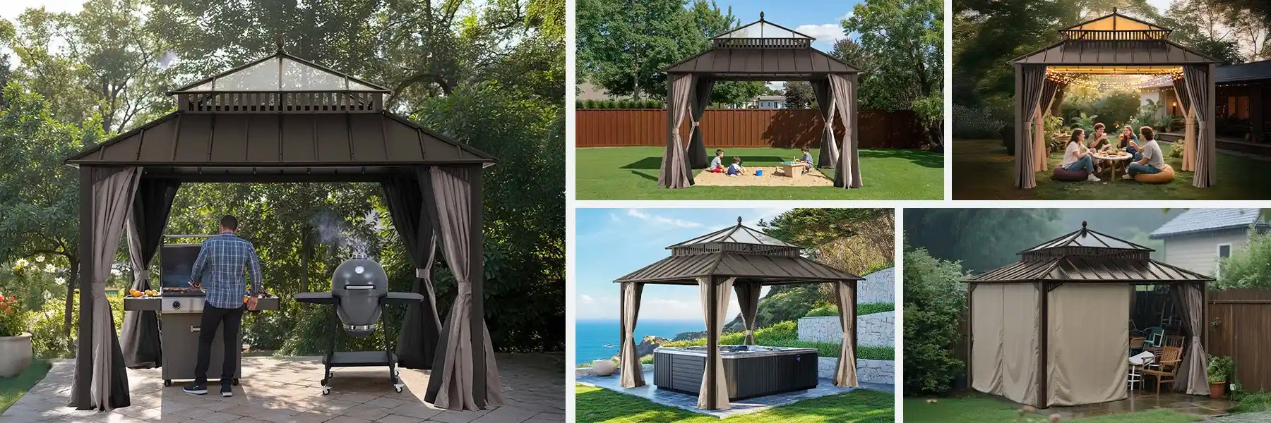 Looking for ideas to transform your backyard? Explore these real customer photos and see how Sunjoy gazebos are making a difference in outdoor spaces just like yours. From rustic wooden designs to sleek hard-top models, the possibilities are endless. Perfect for dining, lounging, or entertaining across patios, gardens, poolside spaces, and more—designed to elevate every moment spent outdoors.